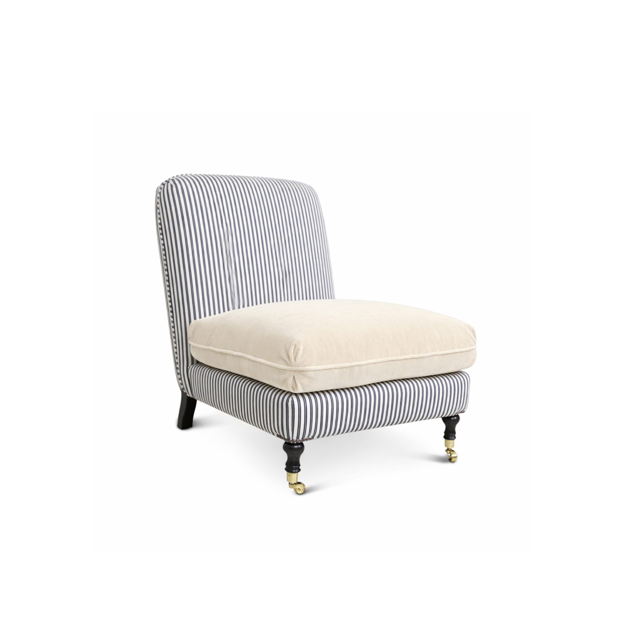 Every Blue Label armchair is made to order, allowing designers to specify every detail to achieve the perfect fit for their scheme. We welcome COM (customer’s own material) upholstery, giving you freedom over colour, pattern and texture. Timber finishes for the legs or bases can be chosen from our curated palette, and additional details such as studs can be added where appropriate.