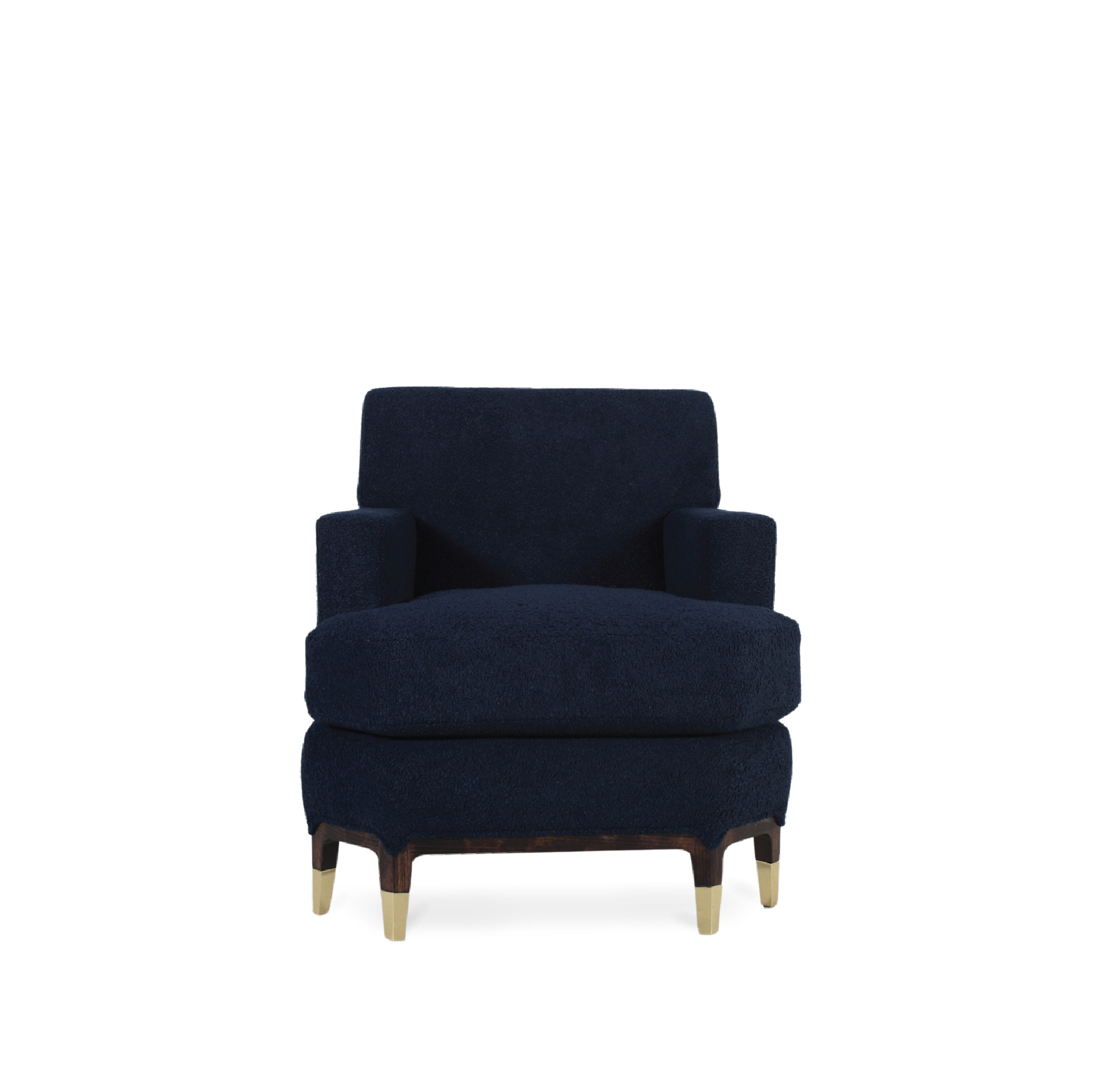 The Baring Armchair blends refined craftsmanship with a worldly sensibility, featuring clean lines, a generously cushioned seat, and a strong, structured silhouette. Subtle design touches evoke a global influence, nodding to timeless styles seen in cosmopolitan interiors—from classic European salons to contemporary Eastern lounges. Elevated by sculpted wooden legs with elegant metallic-capped feet, it offers both visual poise and luxurious comfort. Pairs nicely with the Baring Stool.