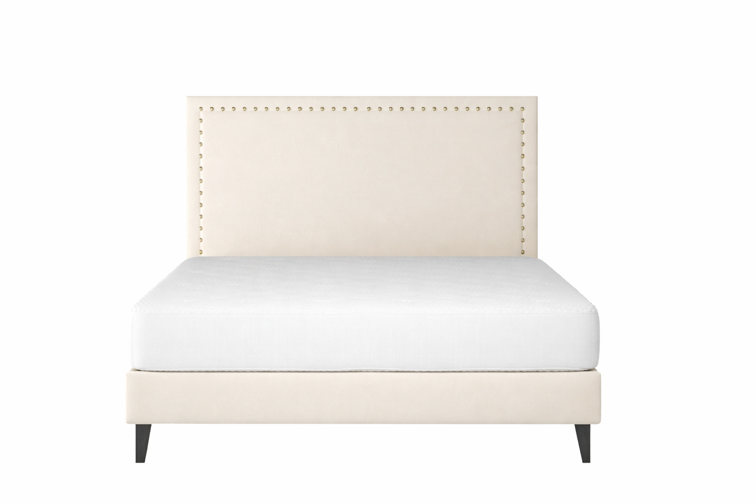 The Barret bed is a simple design with a touch of style. Large nickel studs transform a plain headboard into a focal point. This piece is made as a fully upholstered bed with a slatted base to ensure superb comfort.