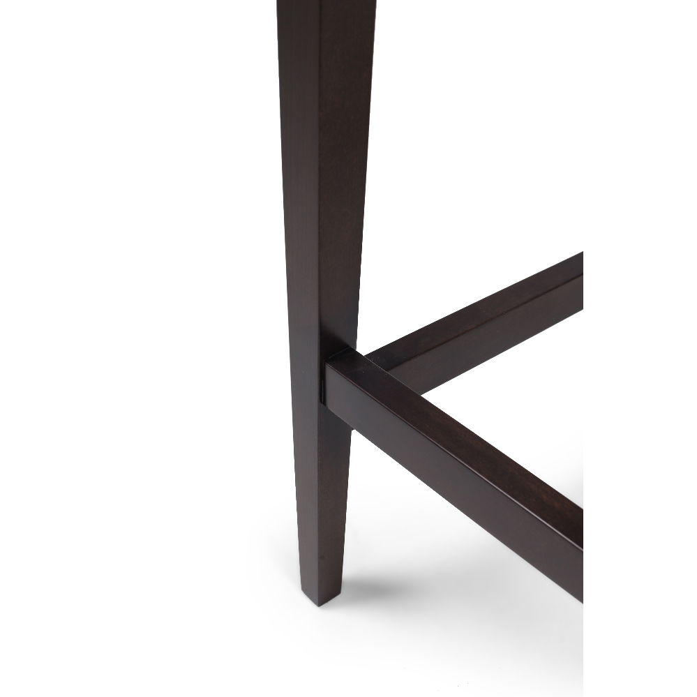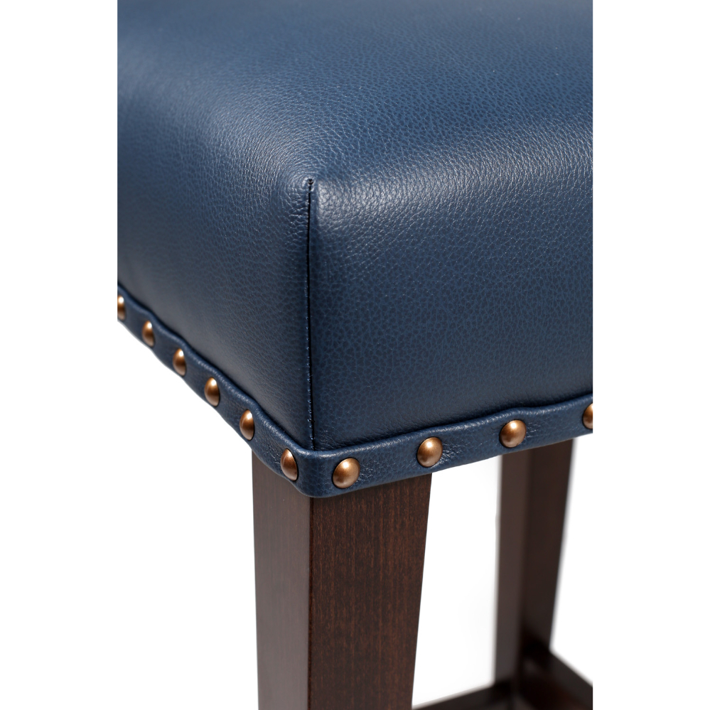 The Britten barstool has a straightforward backless design, with a decorative element in the form of its distinctive nail detail. The frame can be made all in timber, or with a metal foot rail in a choice of brushed brass, polished brass or stainless steel.