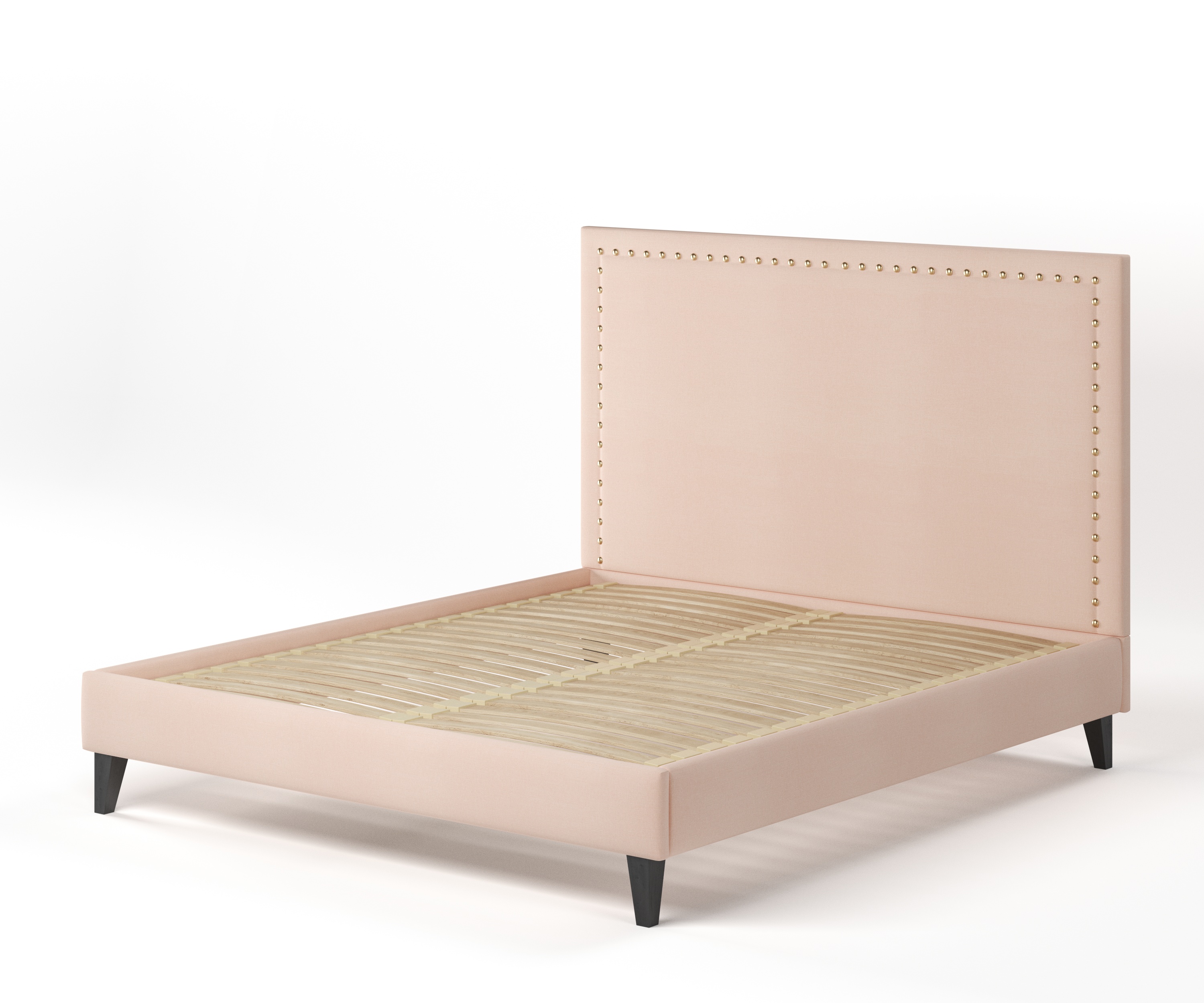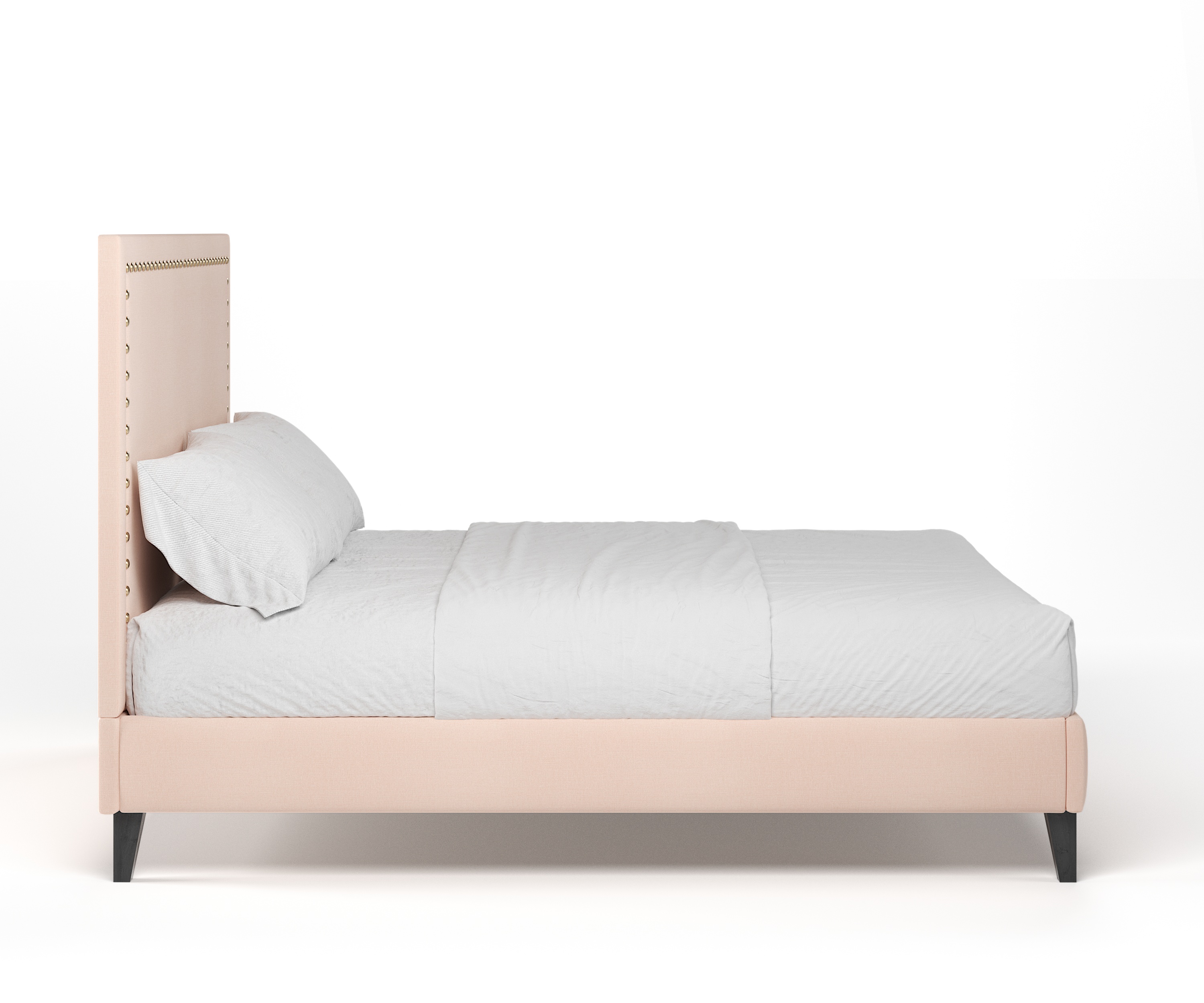The Barret bed is a simple design with a touch of style. Large nickel studs transform a plain headboard into a focal point. This piece is made as a fully upholstered bed with a slatted base to ensure superb comfort.