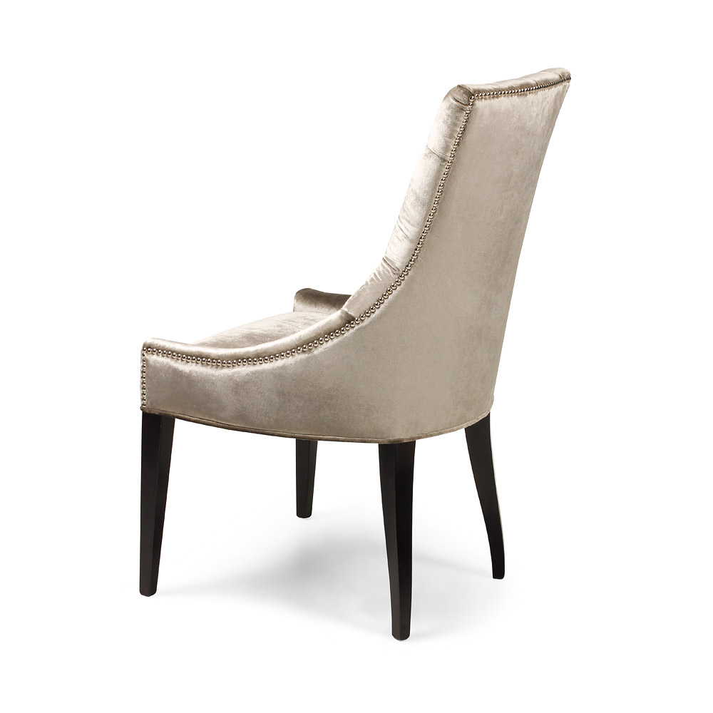 The Bourdon dining chair is a sophisticated design with a slender tall back and deep buttoned detail. The stud detail around the back of them makes them quite special. Suited for any formal dining area or a small space that needs something with a lot of style. The sprung seat ensures the comfort of this chair matches the outstanding look of it. Solid beech frame is perfect for either domestic or commercial use.