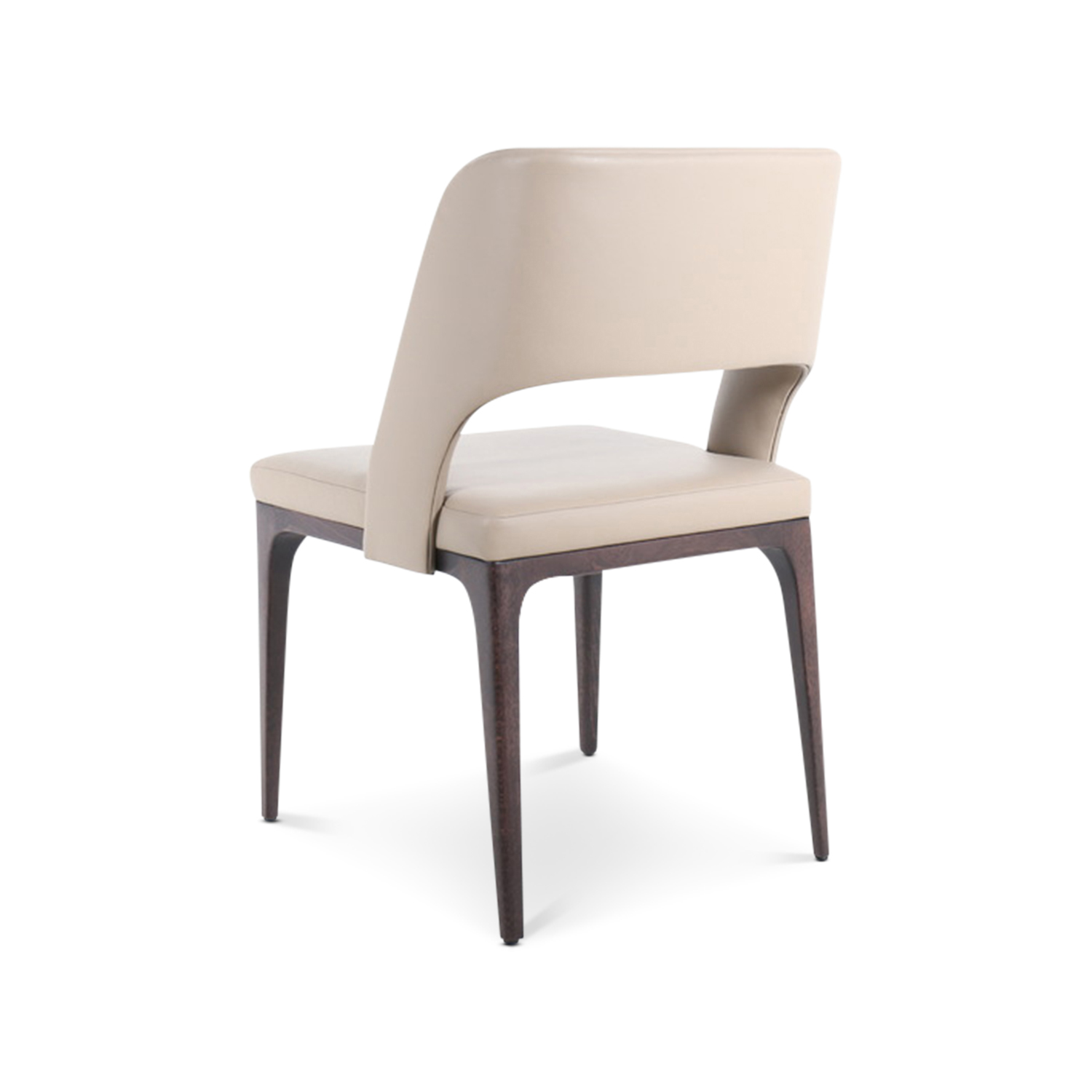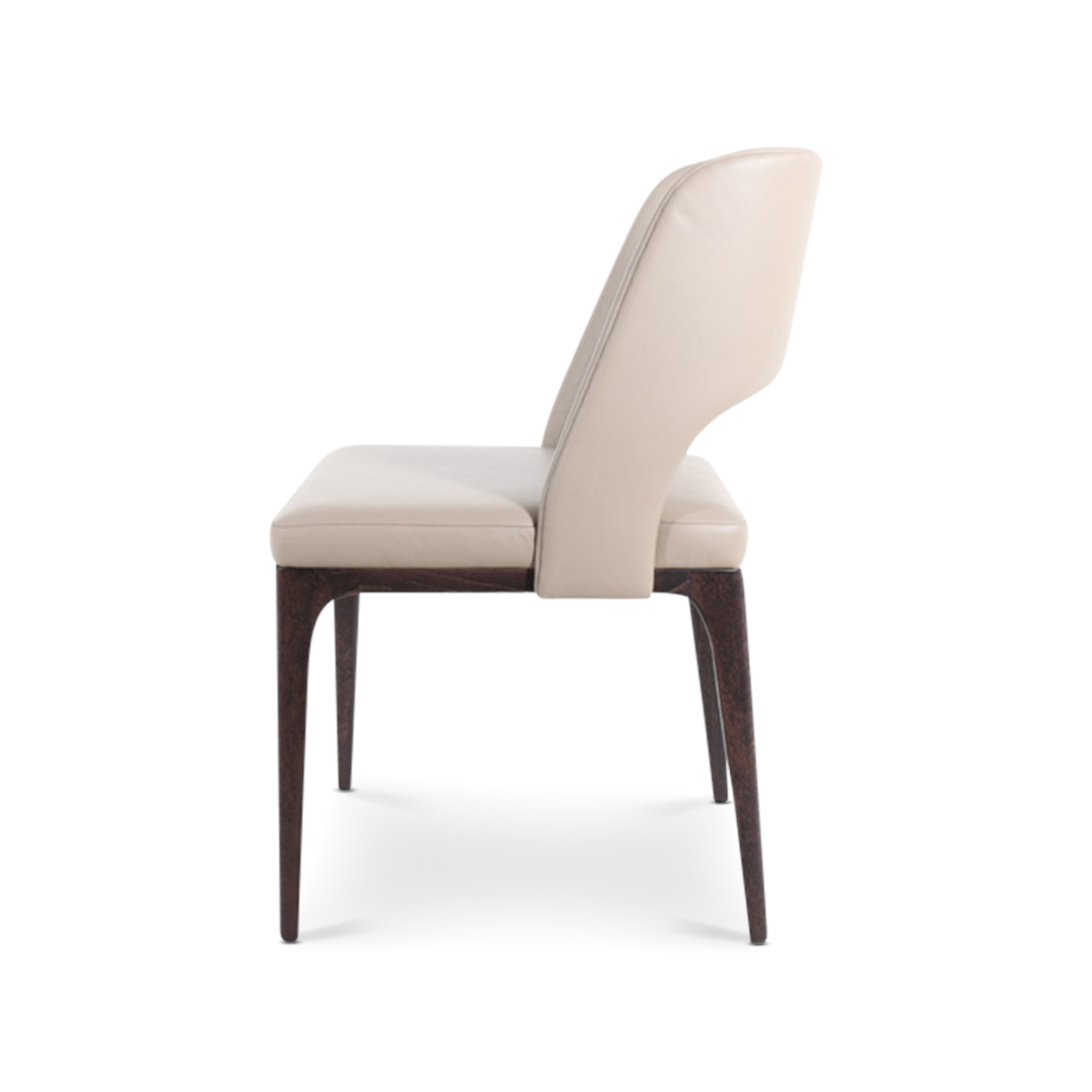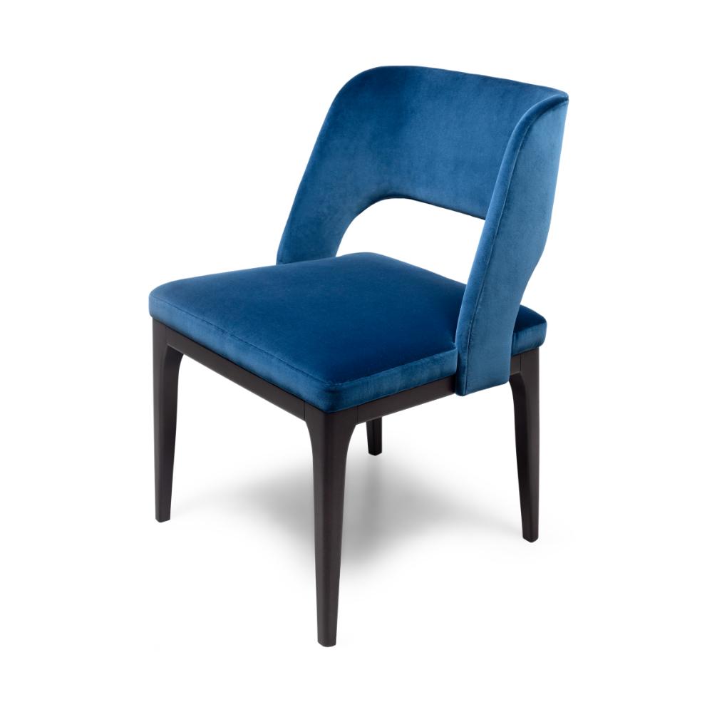 This comfortable upholstered dining chair is an all-rounder that will take on a different personality depending on its fabric. It could be used for a relaxed home dining room or in a modern restaurant.
