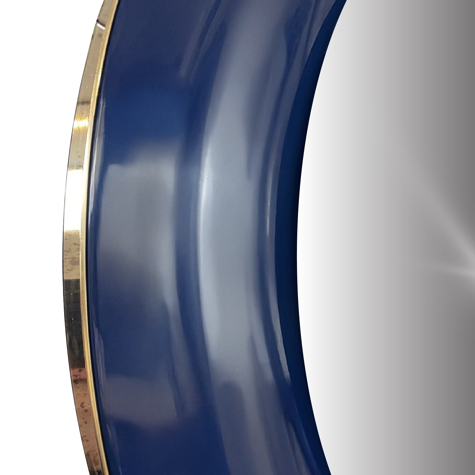 Elegant in design, the Oakhill has a bevelled mirror that floats above a classic RAL frame in the colour of your choice. Shown here in RAL 5011 with a polished brass frame. Available in clear or antiqued glass, in 4 sizes: