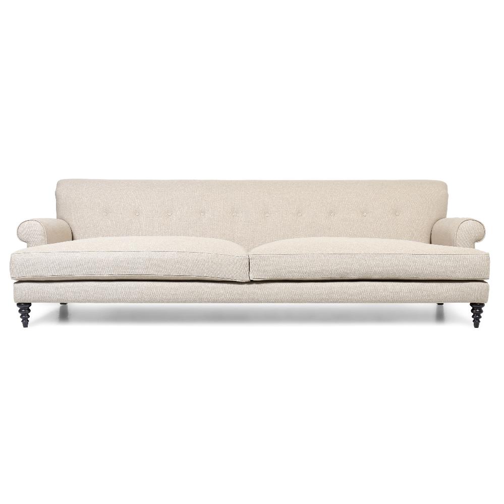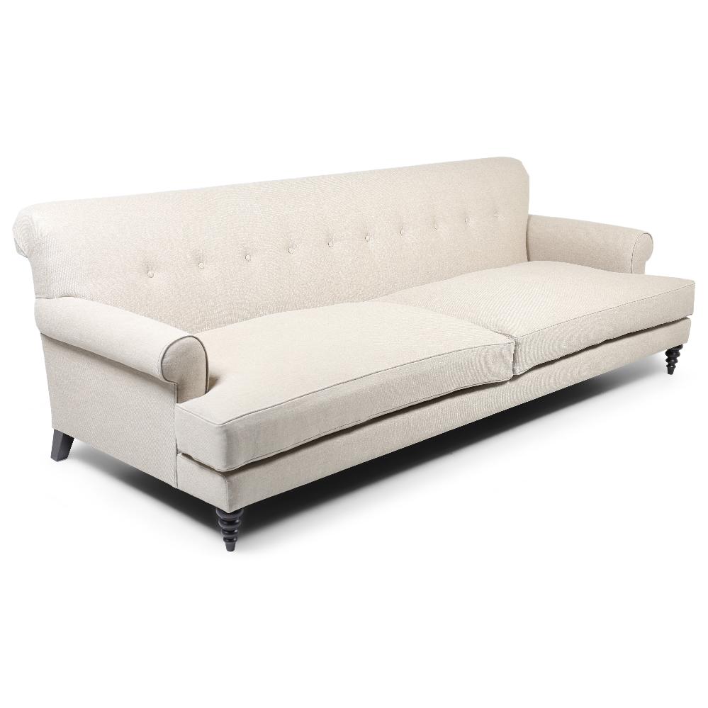 The Melton sofa has a scroll arm, quite traditional in its shape but the float buttoned detail and beehive leg adds a modern twist to this design. The sprung fixed back allows for superb support while the feather and down wrapped foam seat cushions provides a soft comfortable sit.