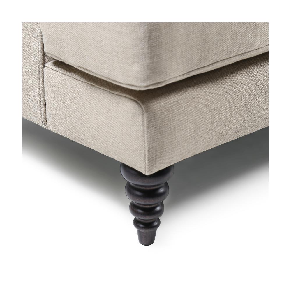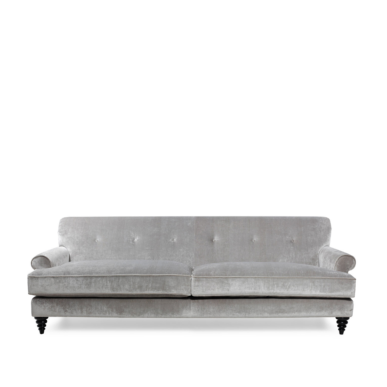 The Melton sofa has a scroll arm, quite traditional in its shape but the float buttoned detail and beehive leg adds a modern twist to this design. The sprung fixed back allows for superb support while the feather and down wrapped foam seat cushions provides a soft comfortable sit.