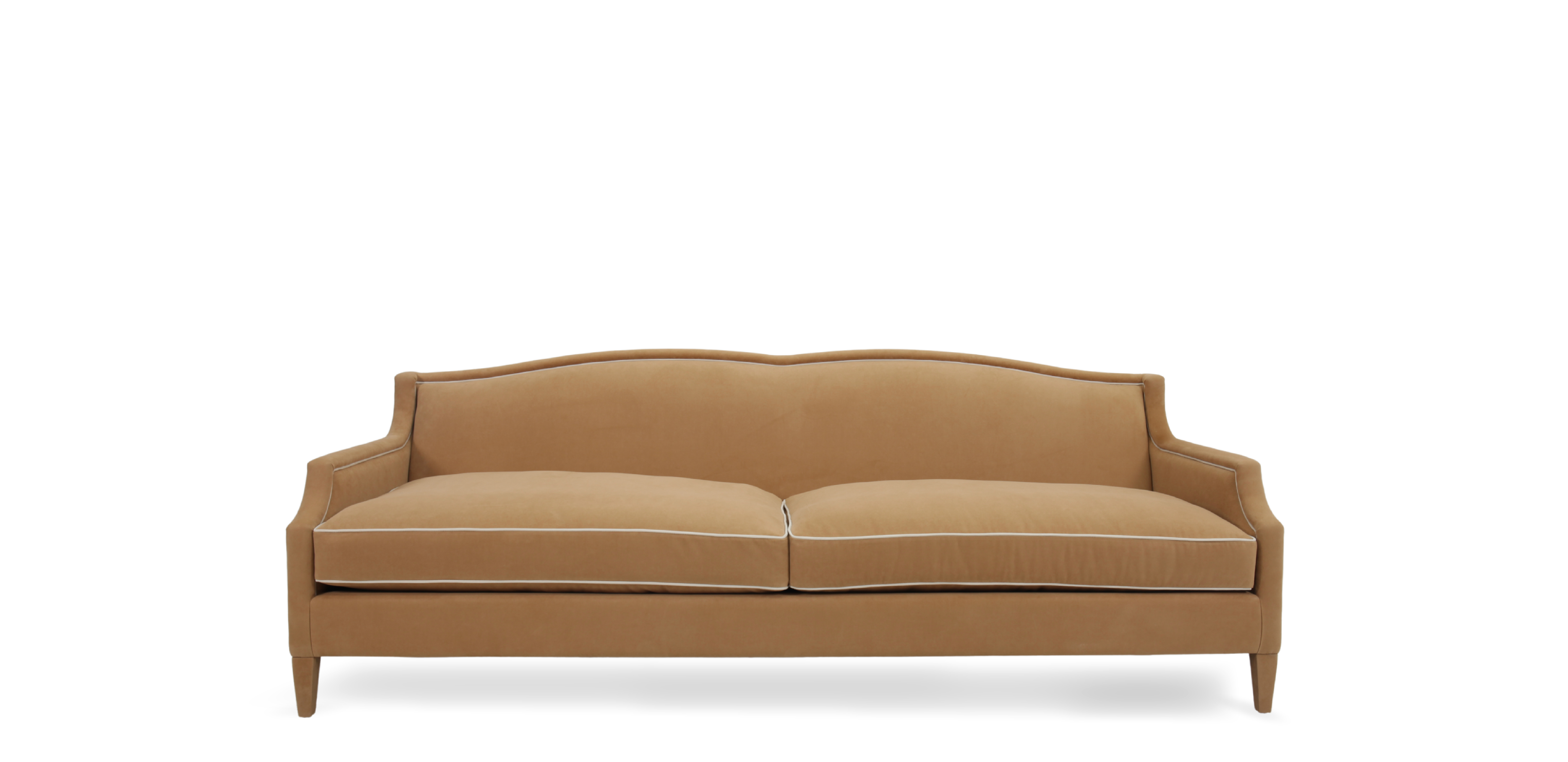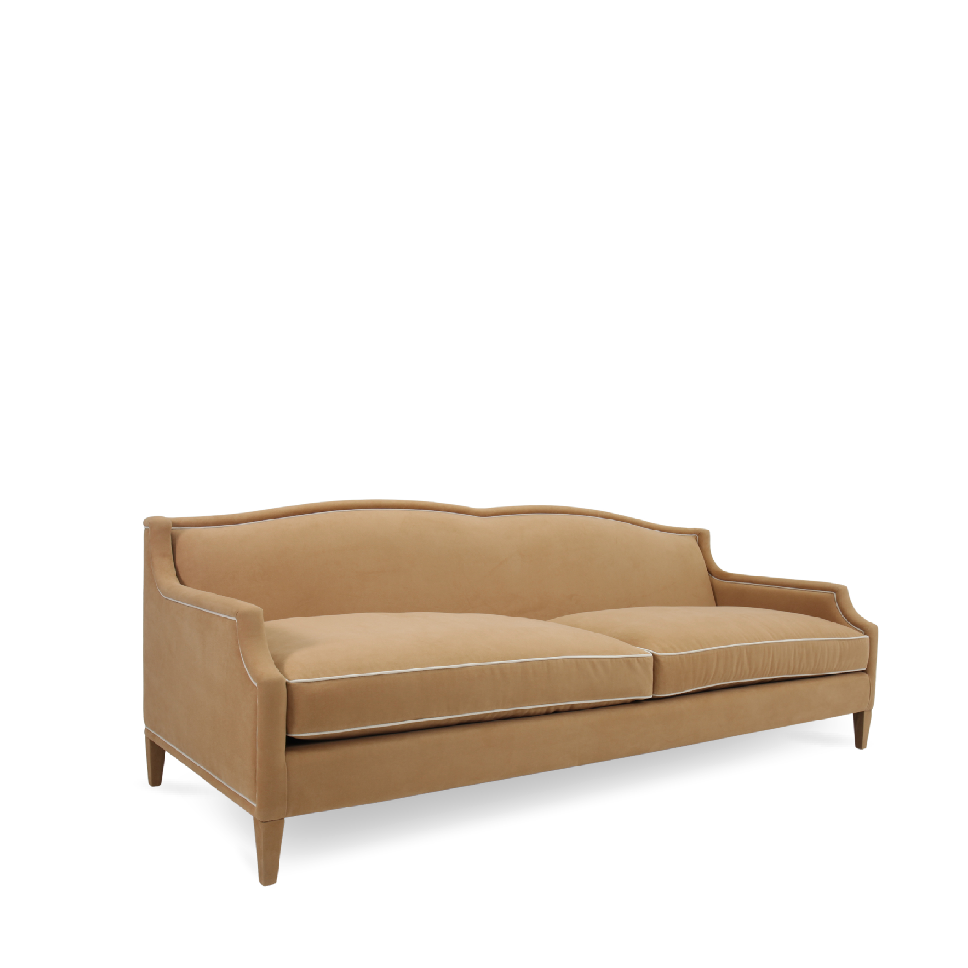 The Ruby sofa is defined by its elegant, gently curved backrest, which adds a graceful note to the clean silhouette. Generous seat cushions offer comfort while maintaining the structured form, and upholstered legs provide an elegant finishing touch. Blending timeless detailing with contemporary ease, it serves as a versatile and sophisticated centrepiece for any interior.
