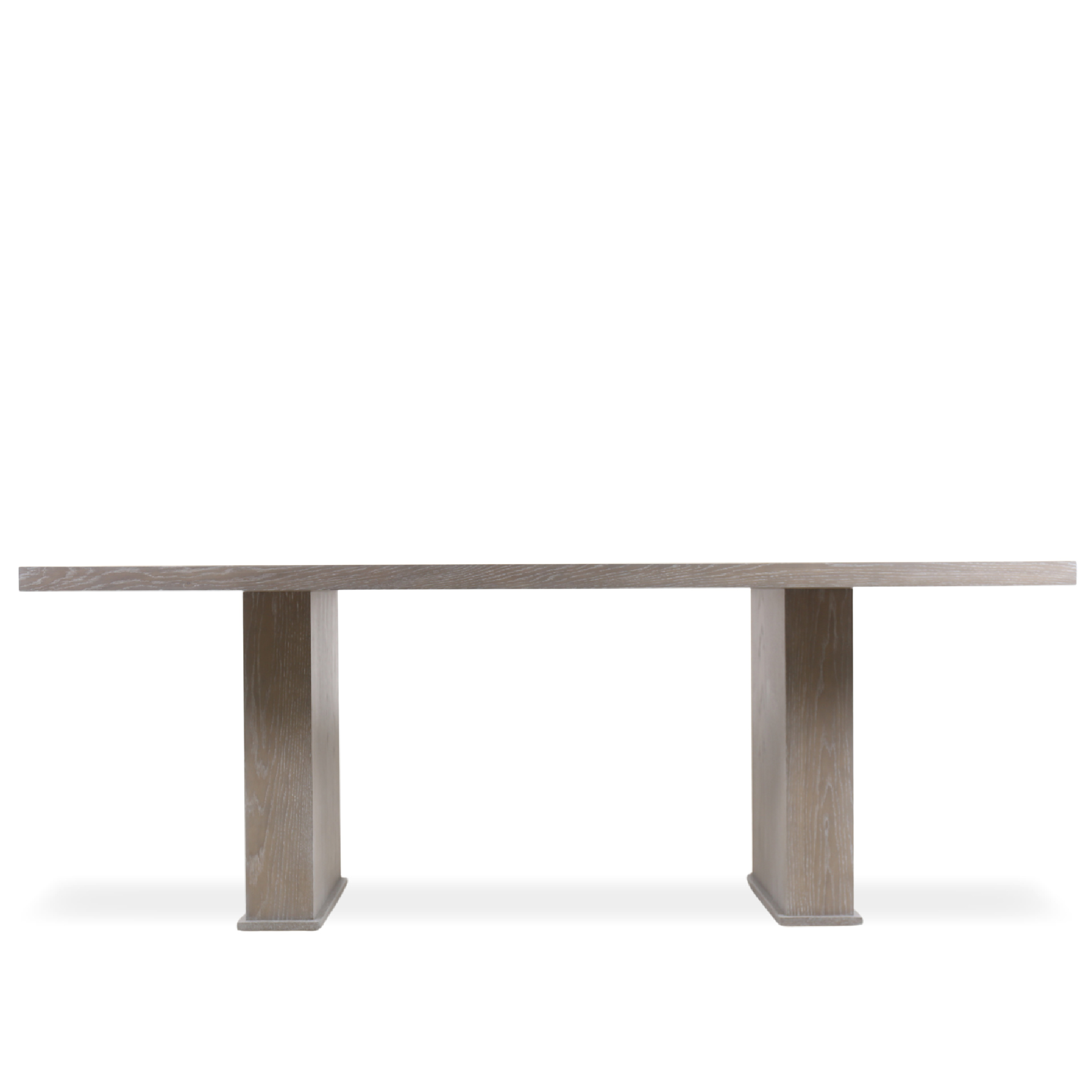 The Caracalla dining table presents a bold, contemporary silhouette defined by its clean rectangular top and dual pedestal supports. The broad, plank planes of the base provide a strong architectural presence while ensuring stability and balance. With its refined proportions and minimalist form, it serves as a versatile centrepiece that complements both modern and transitional interiors.