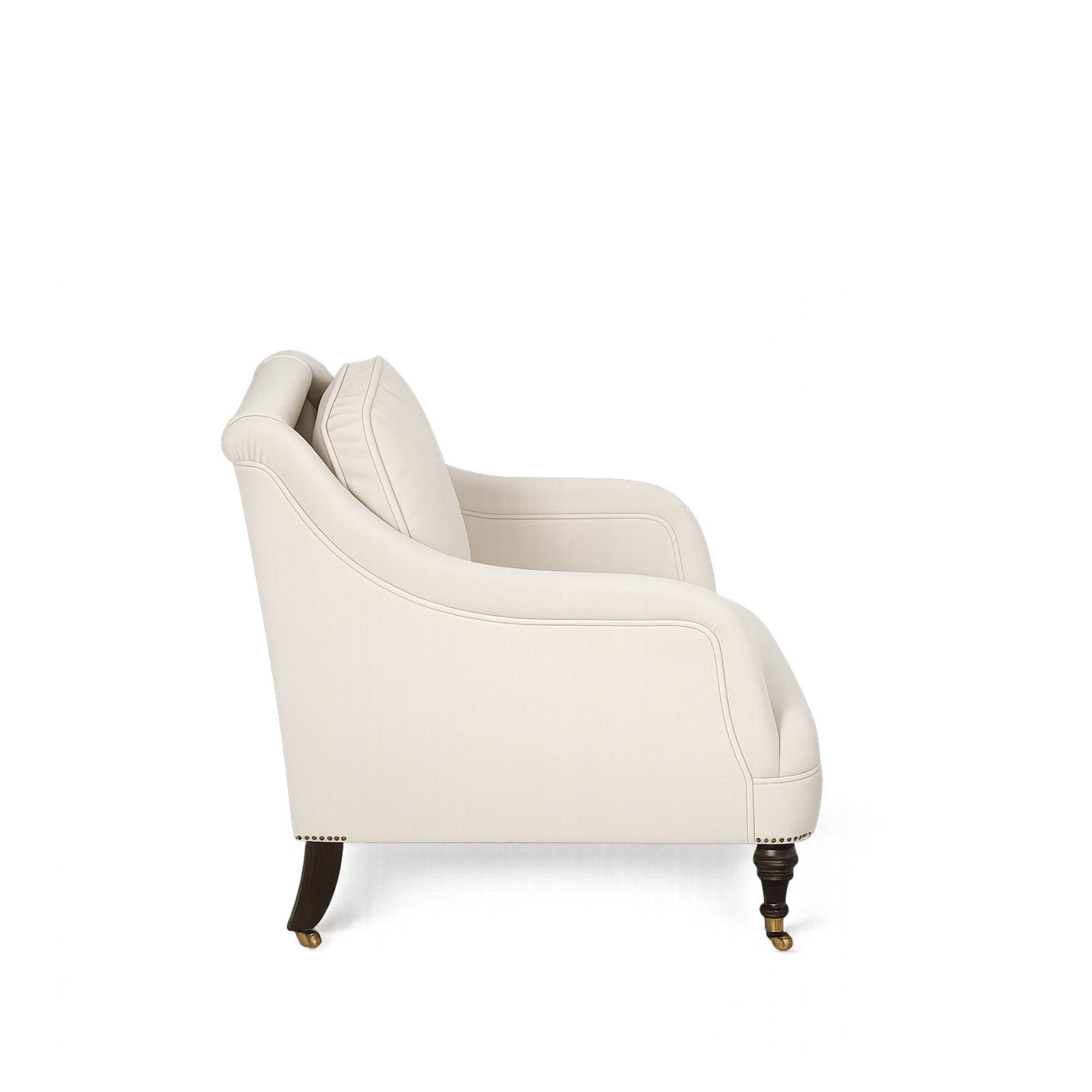 The Davenant Armchair blends classic craftsmanship with modern versatility, featuring elegant turned legs set on brass castors for effortless movement. Its refined silhouette and tailored upholstery allow it to sit beautifully in both contemporary and traditional interiors, offering comfortable, timeless seating with a polished finish.
