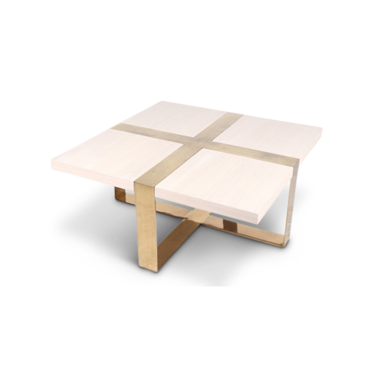 The Iris coffee table is a striking centre piece for any living room or reception area. A dark stained wood top contrasts with a stainless steel crossed frame.