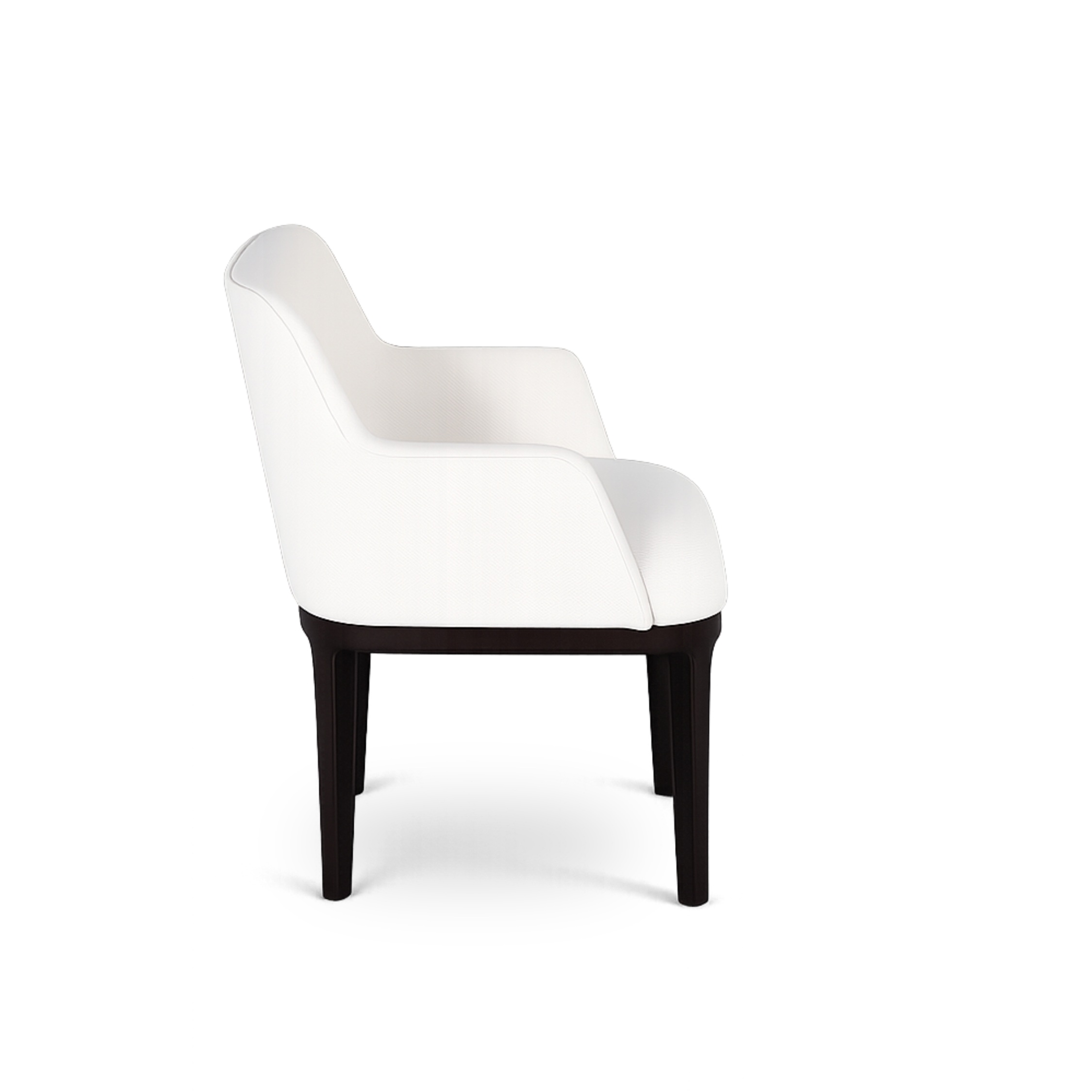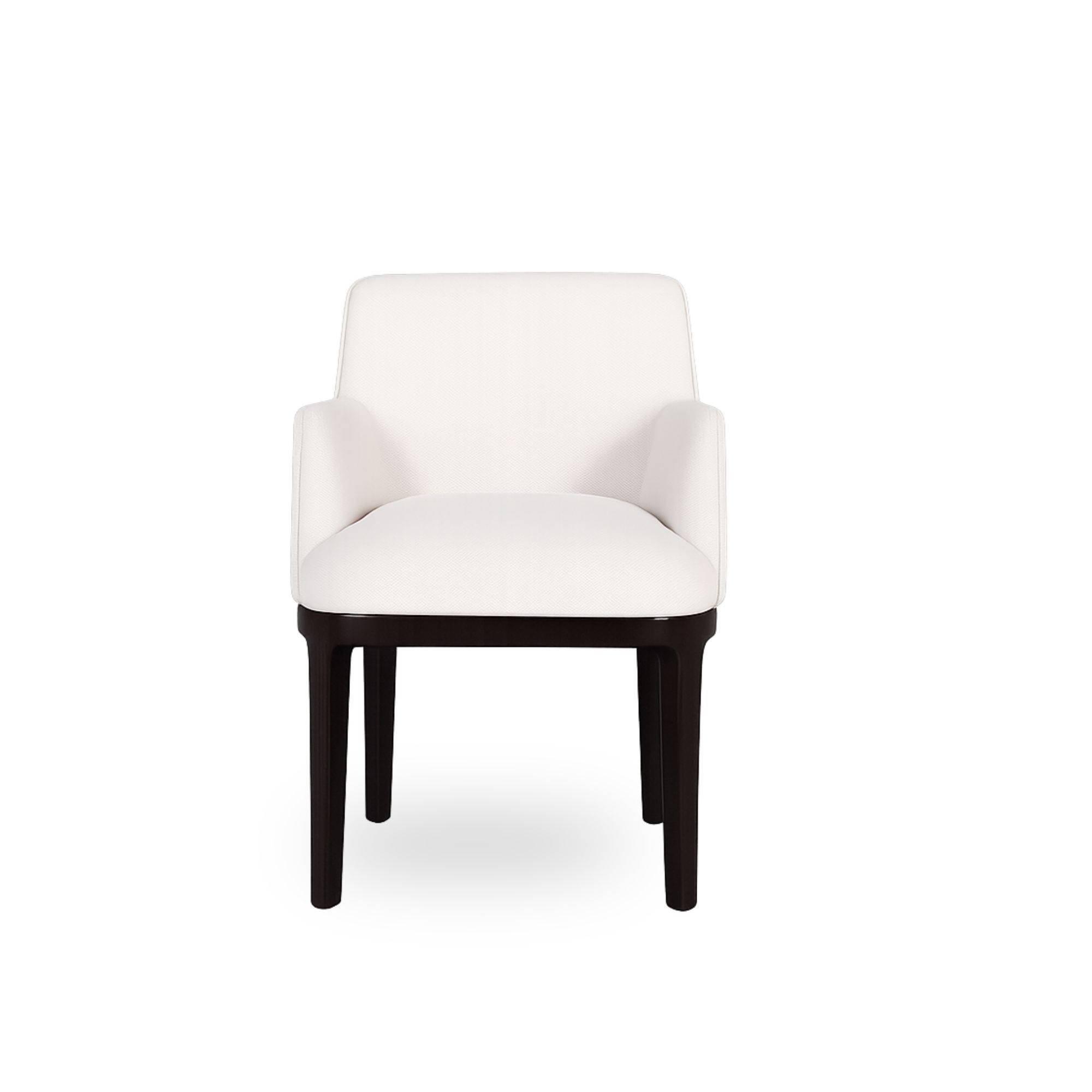 The Melrose Dining Chair features fully upholstered arms and a gently curved back, creating a comfortable seat. Its versatile design adapts effortlessly to different interiors, with its look transforming through your choice of fabric and finish.