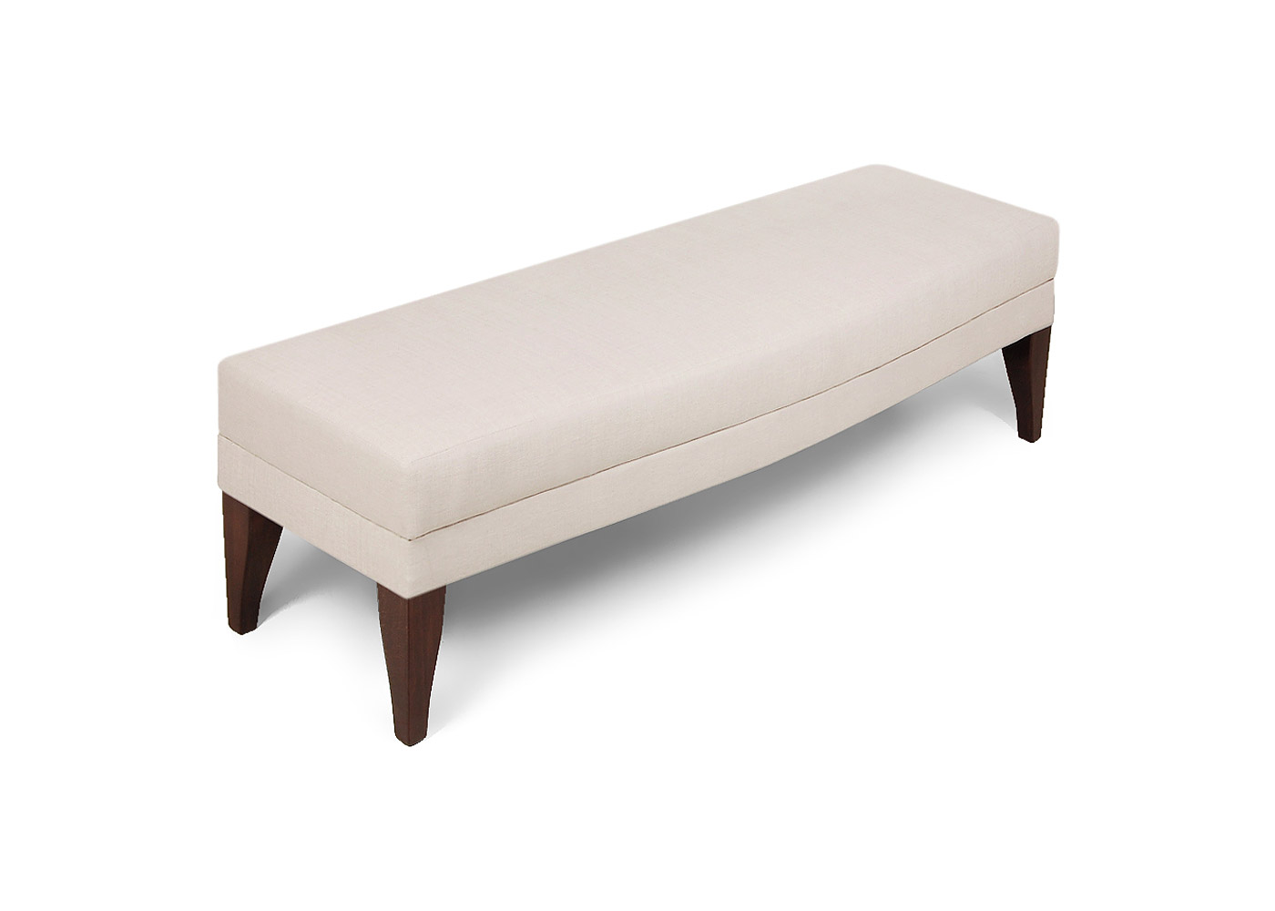 The Moreton stool although plain in design has a beautiful bow front detail which adds to its charm. Fixed upholstered seat with a seam detail at the base, the Moreton stool can be used as an end of bed ottoman or for added seating in narrow spaces. Available in various sizes.
