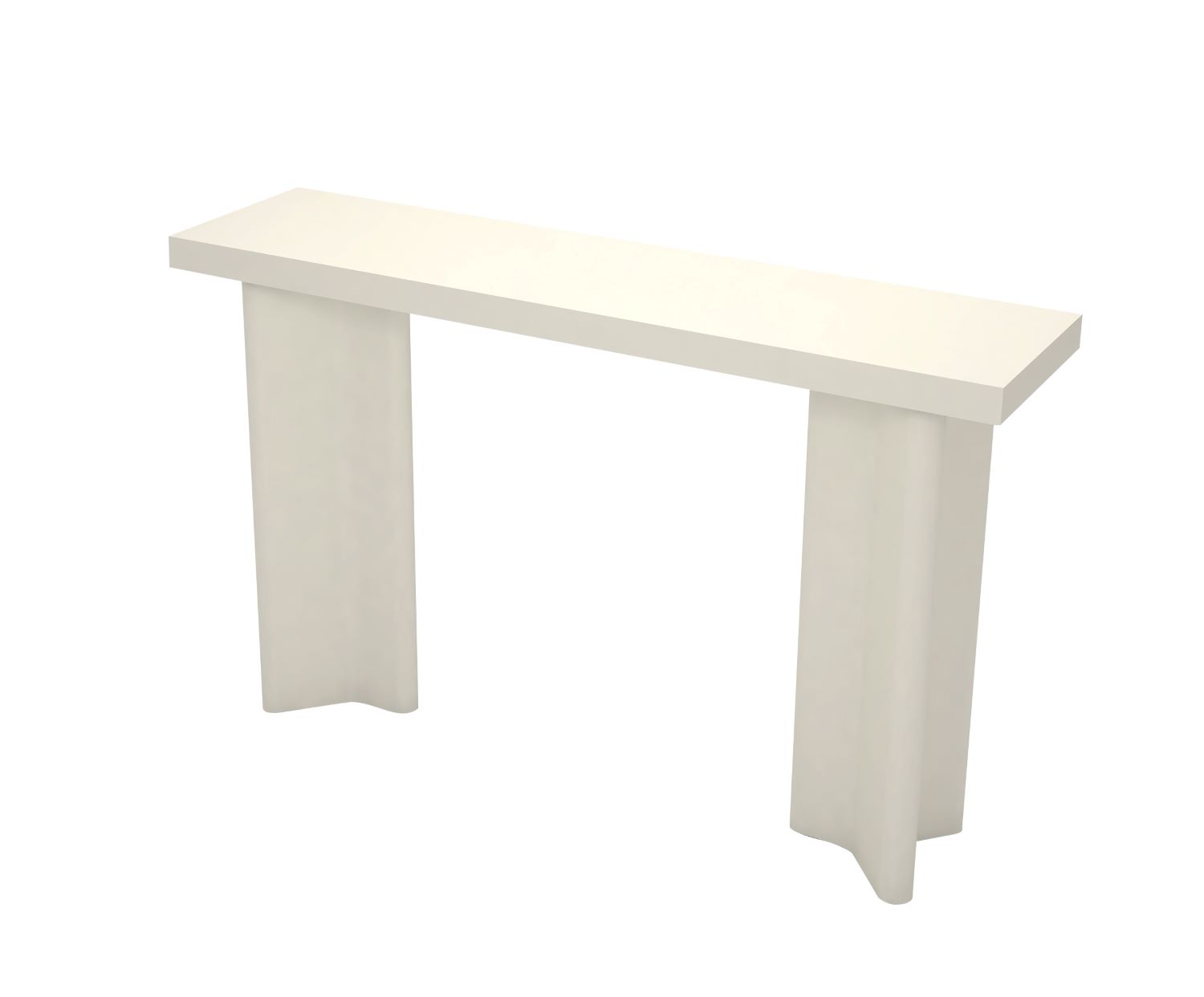 The Myrdle Console Table is a study in sculptural minimalism, finished in a pristine RAL lacquer for a seamless, high-impact look. The top is sleek and monolithic, offering clean, architectural lines, while the twin pedestal legs create a striking visual rhythm. Each leg features a distinctive fluted contour—soft curves that evoke the fluidity of draped fabric or carved stone, grounding the piece with a sense of understated elegance. The uniform RAL finish enhances its modernist form, lending a gallery-like presence perfect for curated interiors.