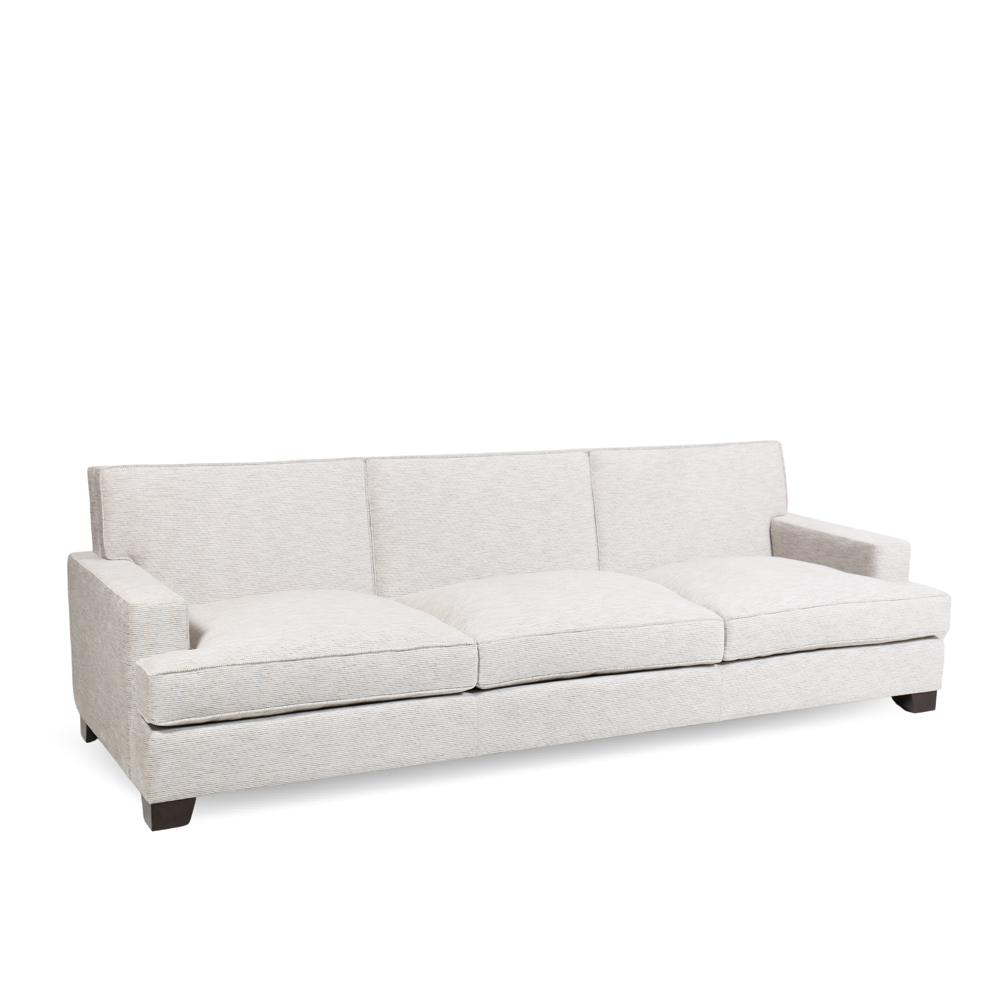The Onslow sofa is a design inspired by the 1930’s era. Low, square chunky arms and back give this sofa a modern feel. Depending on the fabric used this design will compliment all interior themes. Fixed sprung back for exceptional comfort. Cushion interiors are our standard feather and down, foam wrapped cushions. Easy to maintain with minimal plumping required.