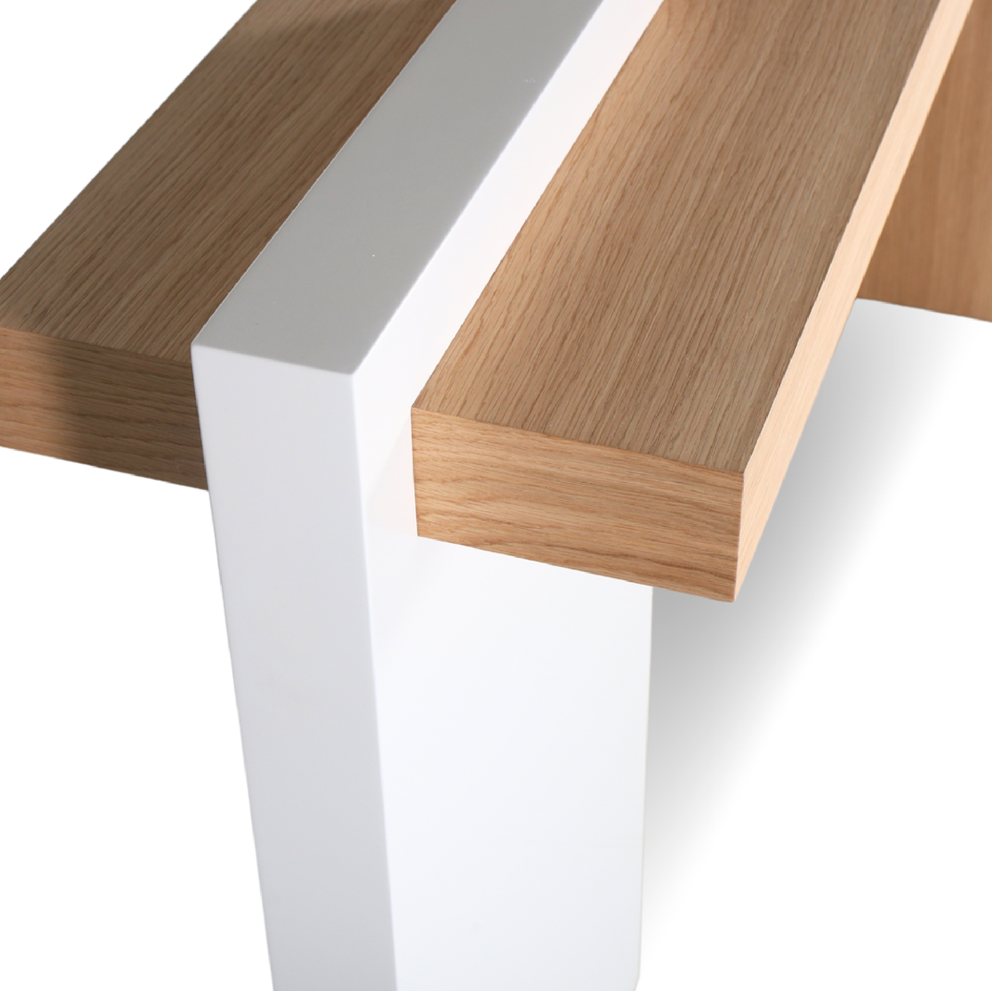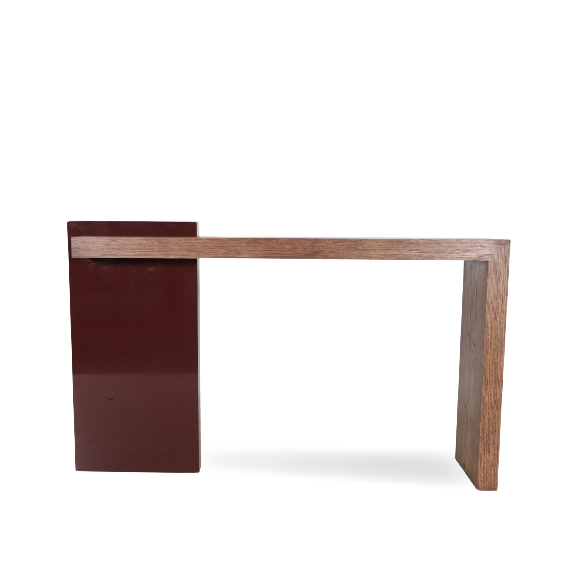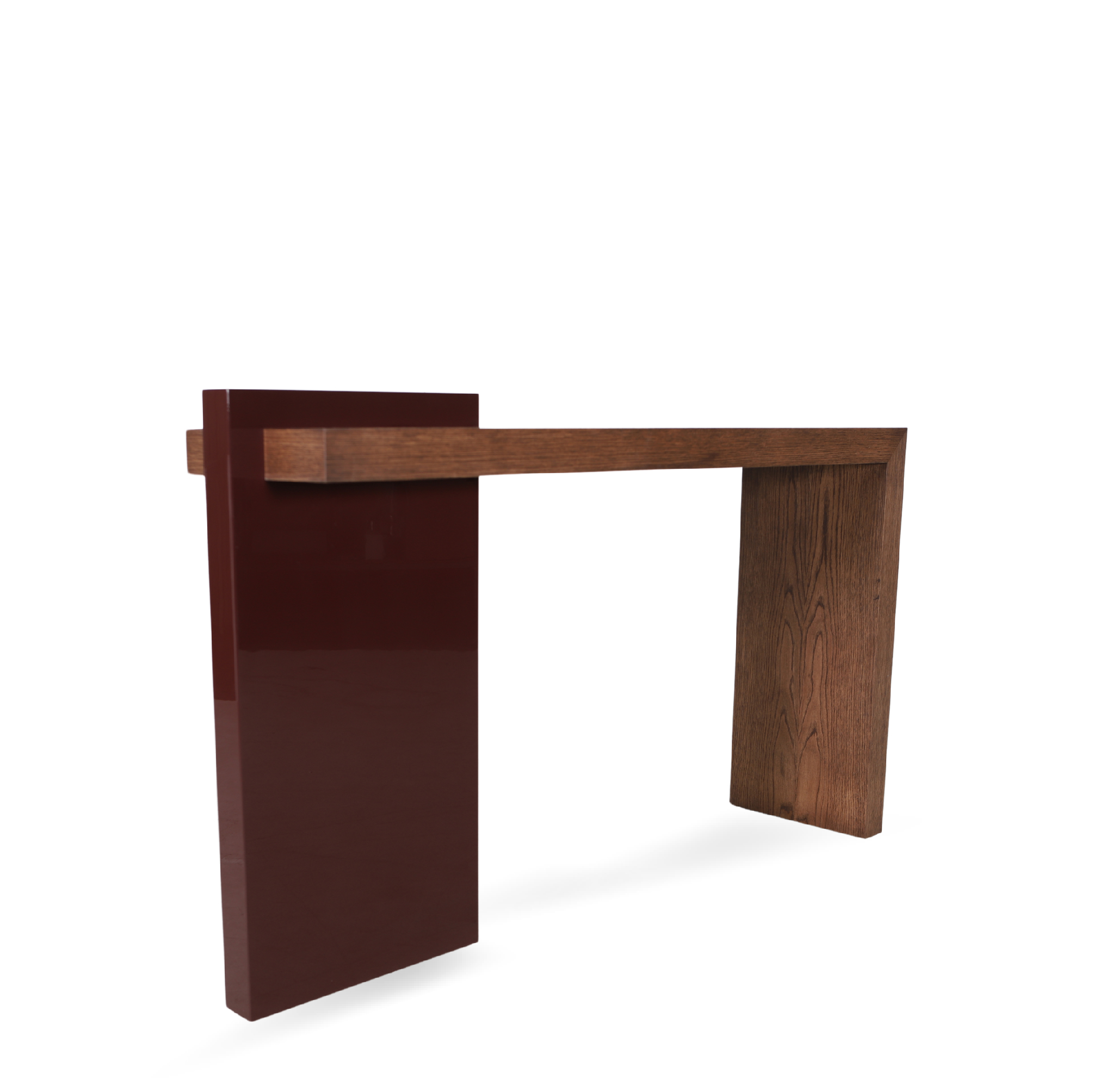 The Ormsby is an asymetric console shown here in coloured lacquer and veneer. Supplied with Ben Whistler discrete wall fixing in case it’s being placed on a carpet or rug edge.