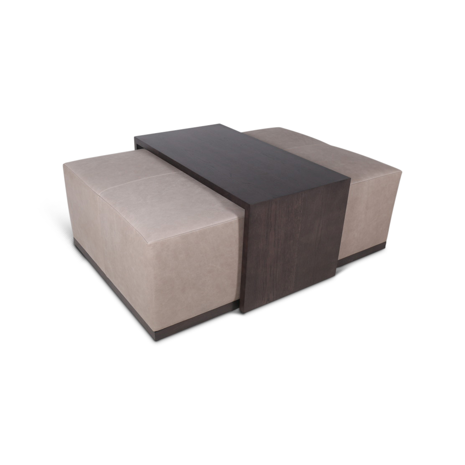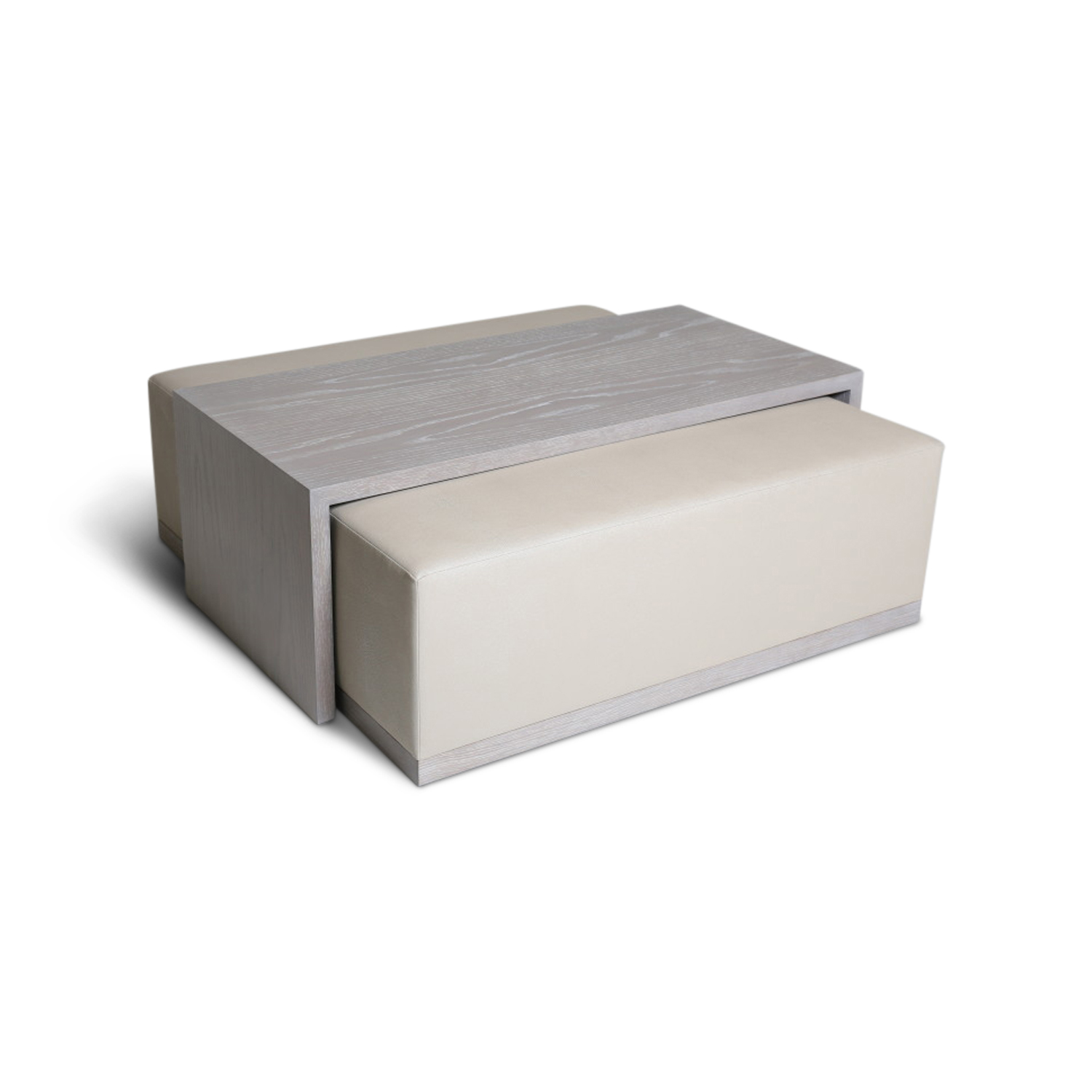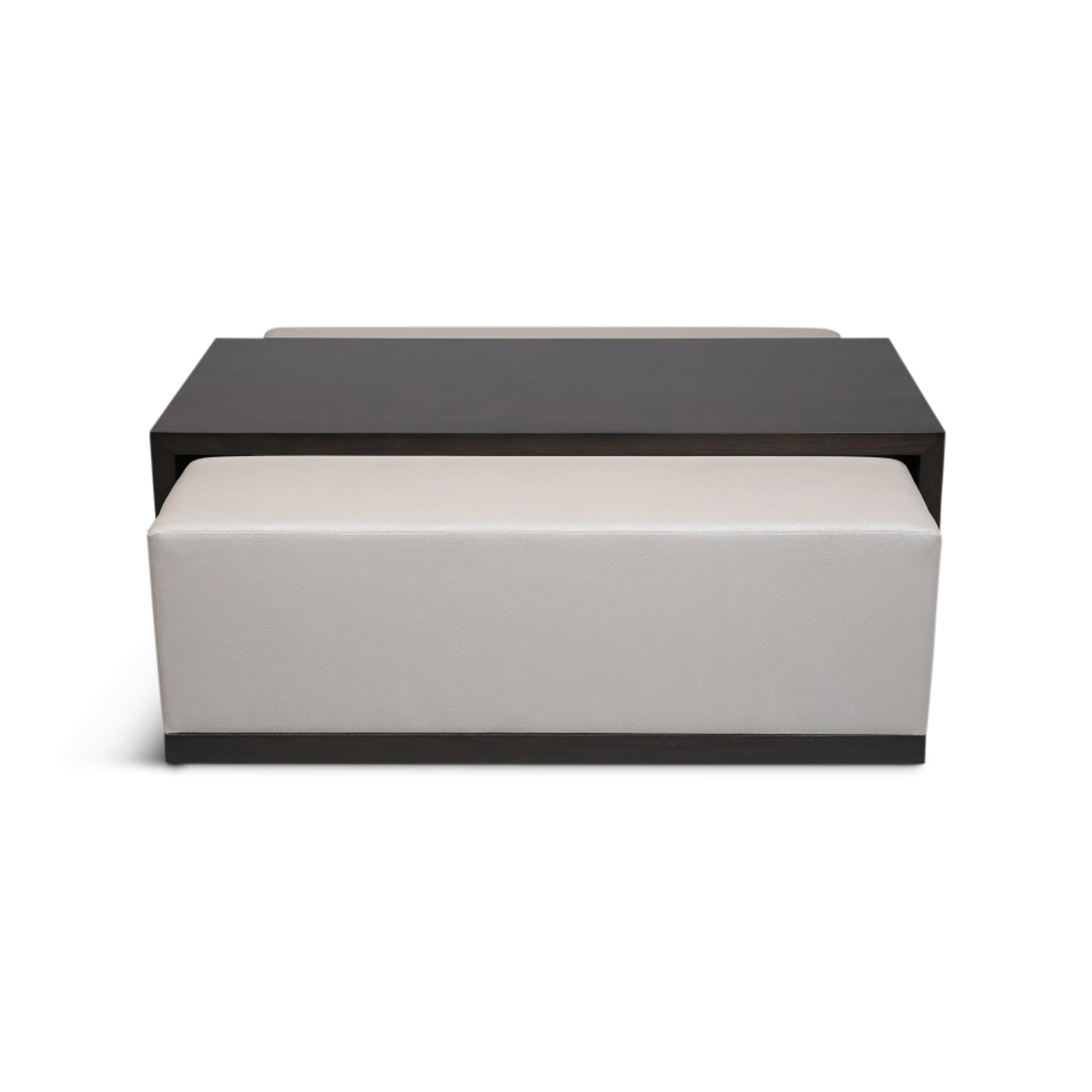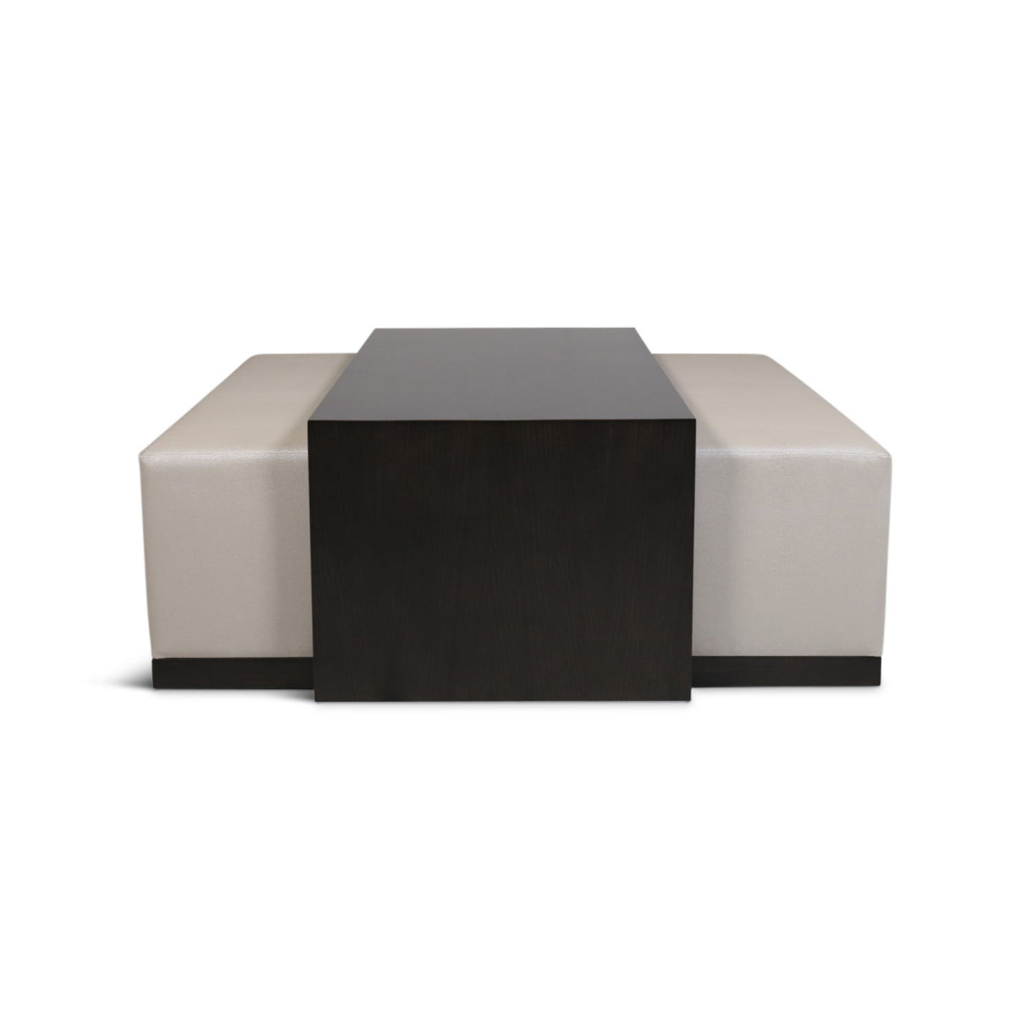 A masterful combination of form and function. Its unique design features plush, upholstered seating elements flanking a rich wooden centre, creating a versatile and luxurious piece that adds both comfort and contemporary elegance to any living space.
