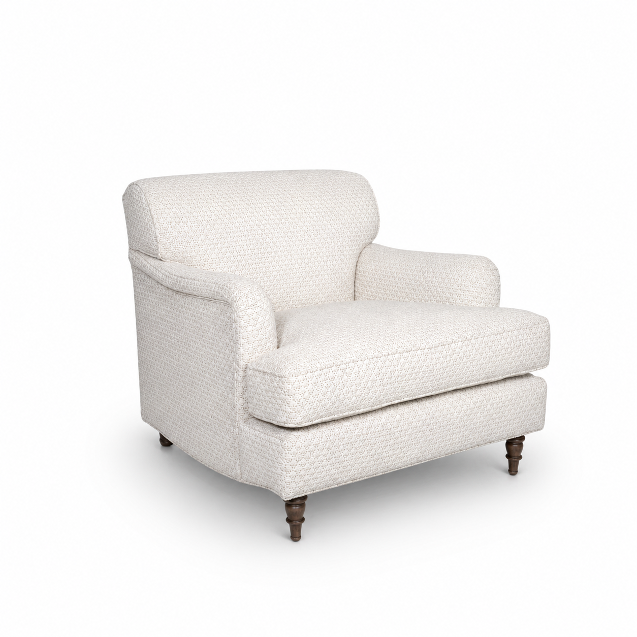 The Santiago Tub Chair features a sculpted tub silhouette with a fixed upholstered back and a plush loose seat cushion for added comfort. Its refined, wraparound form delivers modern elegance and inviting softness, making it a versatile luxury accent for any interior.