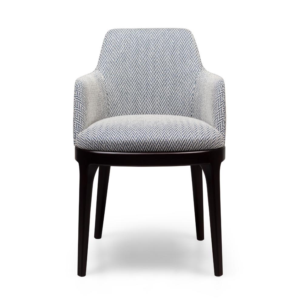 With its enveloping upholstery across the arms and back, the Ventry chair is perfect for comfortable residential dining or as a vanity chair in the bedroom. It’s extremely versatile and will change its look depending on its fabric and finish.