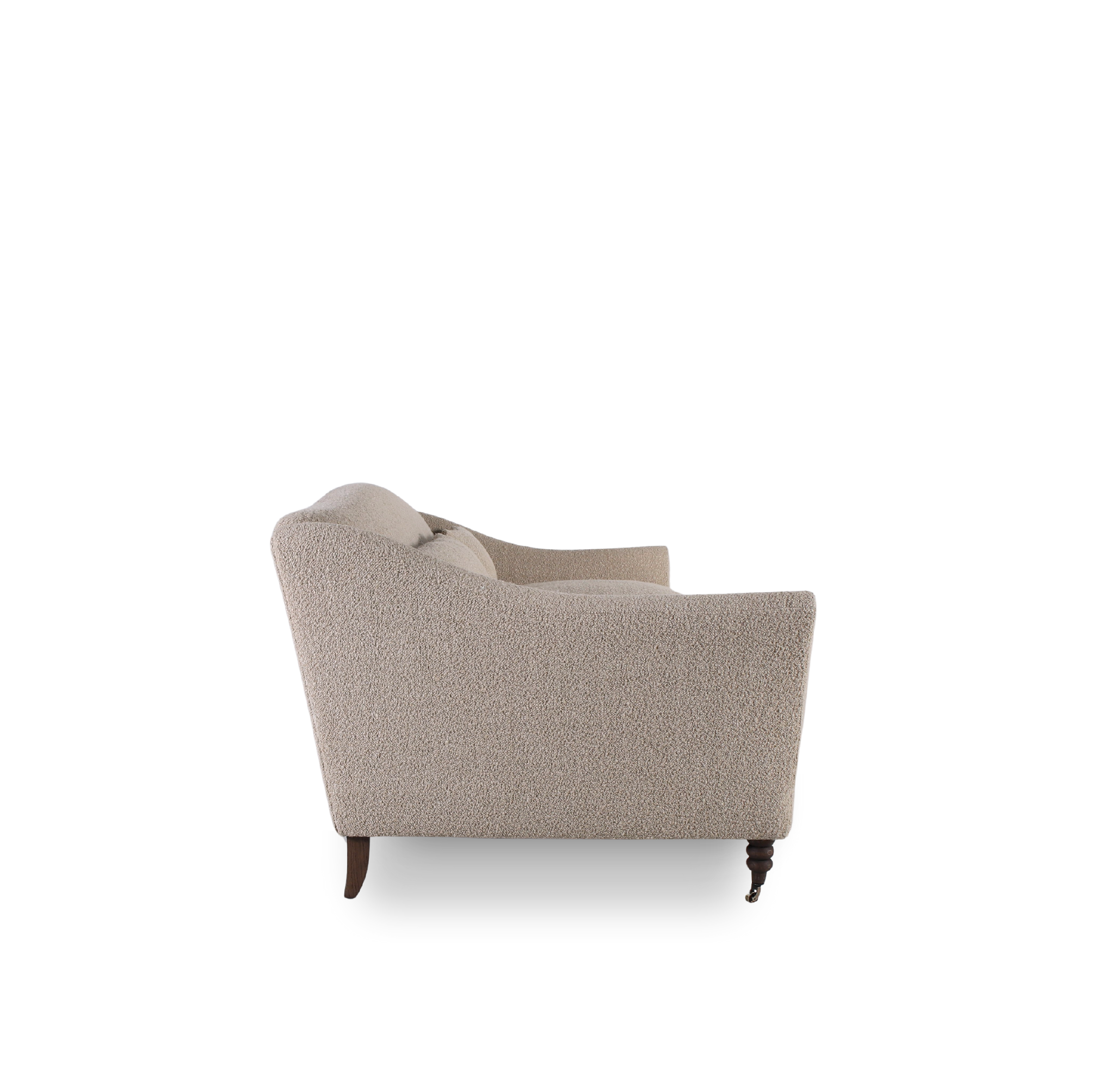The Woodfield sofa combines timeless elegance with inviting comfort. Its gently curved backrest flows into subtly flared arms, creating a graceful silhouette. Deep, plush seat cushions enhance relaxation, while turned wooden legs add a touch of classic detailing. Balanced in form and function, it is a versatile piece that complements both traditional and contemporary interiors.